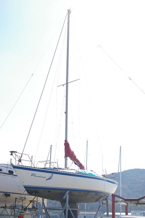 というわけで、今日は、朝からヨットの陸揚げ作業、5トン?10トン?のクレーン屋さんが